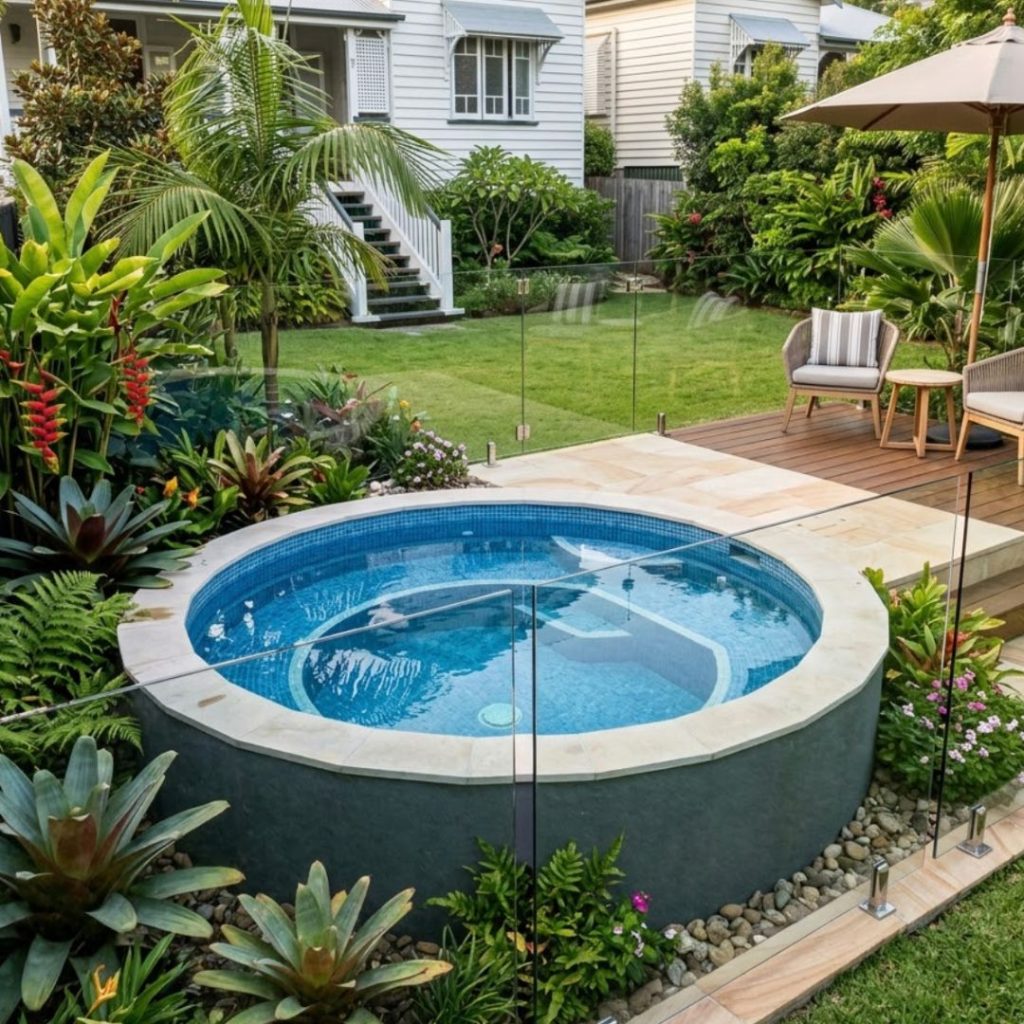 Our round concrete plunge pools are perfect for small Sydney backyards.